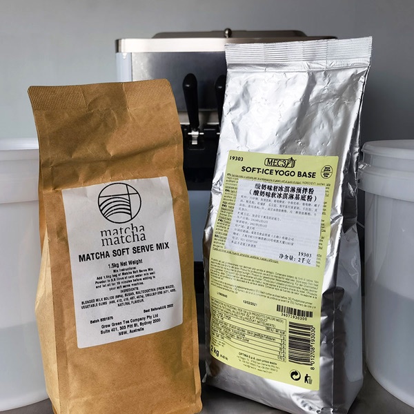 Matcha soft ice cream powder from Japan and soft-yogo from MEC3 from Italy. Follow the instructions, ice cream powder + water, stir evenly and let stand for 15 minutes.