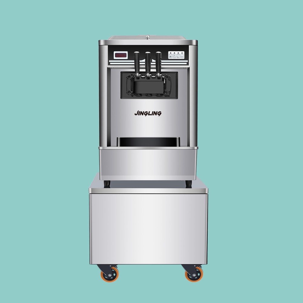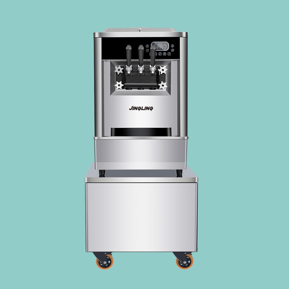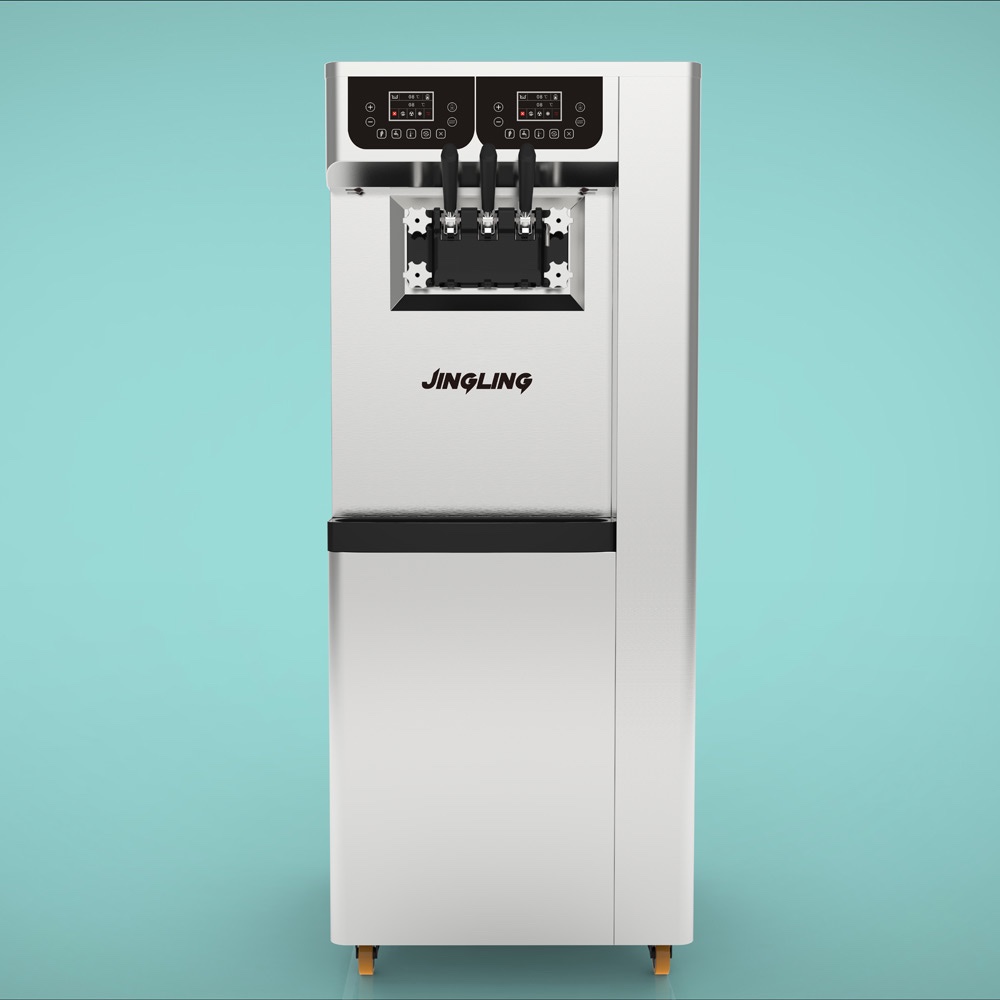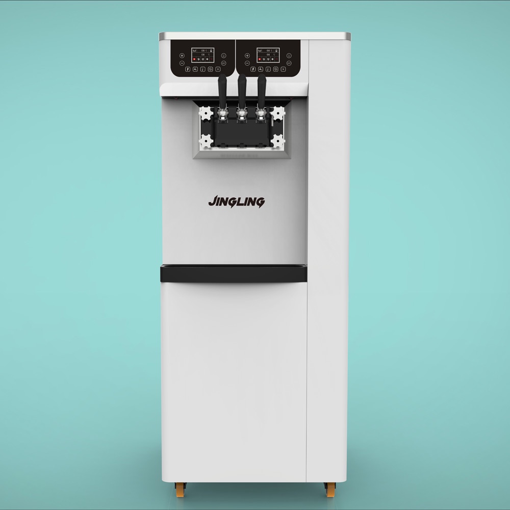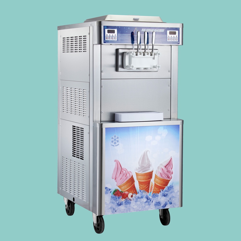 Floor standing, 2+1 Flavor Soft ice cream machine. This equipment is for simple operation and lower overrun products, offering easy use for businesses who are looking to add delicious frozen yogurt or soft ice cream into their service offering.