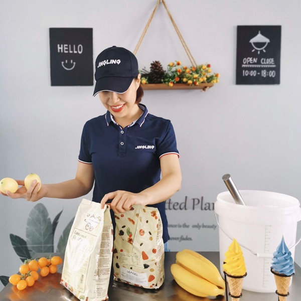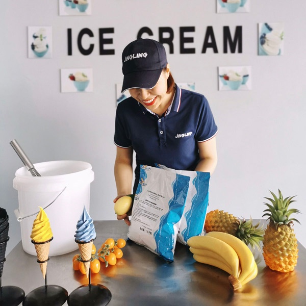 We recommend using a brand-name ice cream mix with a Jingling soft ice cream machine.